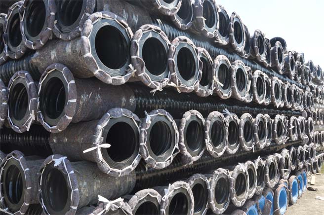 管道采用螺旋焊接波紋鋼管為主體,相當(dāng)于壁厚6倍的鋼管強度