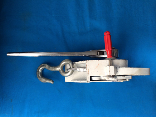 1.安裝:用專有鑰匙反時針打開內(nèi)置棘爪,定位拉出鋼絲繩防溜器,卡槽卡在手閘座上,拉鉤掛在手閘鏈環(huán)上,順時針轉(zhuǎn)動制止用棘輪搬手擰緊既可。