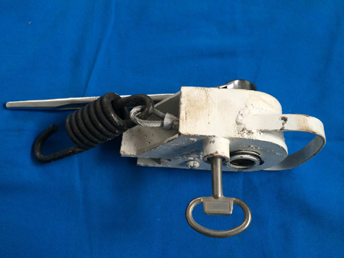 新型開啟定位式鋼絲繩防溜器是我公司研制的專利產(chǎn)品,是在鐵路車輛防溜存在著斷繩、夾繩、鋼絲繩頻繁彎曲,過早疲勞斷裂及維修難,開啟不定位,操作困難,無法更換鋼絲繩等現(xiàn)象、設(shè)計出一種新型拉簧式鋼絲繩防溜器。一、新型開啟定位式鋼絲繩防溜器具有以下優(yōu)點: