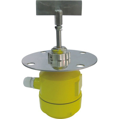 利用永磁電機帶動葉片旋轉(zhuǎn),當(dāng)被檢測物料上升至葉片位置時,葉片轉(zhuǎn)動受阻,該阻力通過傳動軸傳遞到接線盒內(nèi)的檢測裝置,檢測裝置則向外輸出一個開關(guān)信號,并切斷電機電源使葉片停止轉(zhuǎn)動。當(dāng)物料下降時,葉片阻力消失,檢測裝置便依靠彈簧的拉力恢復(fù)到原始狀態(tài),葉片恢復(fù)旋轉(zhuǎn)狀態(tài)。針對使用于比重相差較大的物料,可調(diào)整彈簧拉力,比重大時彈簧拉力調(diào)整至最強,反之則調(diào)整至最弱。